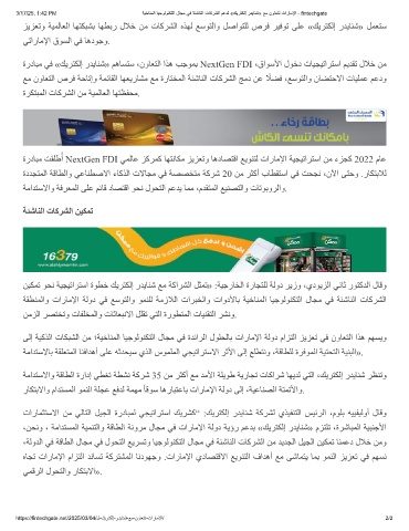 ةردﺎﺒﻣ ﺖﻘﻠطأ NextGen FDI ﻲﻤﻟﺎﻋ ﺰﻛﺮﻤﻛ ﺎﮭﺘﻧﺎﻜﻣ ﺰﯾﺰﻌﺗو ﺎھدﺎﺼﺘﻗا ﻊﯾﻮﻨﺘﻟ تارﺎﻣﻹا ﺔﯿﺠﯿﺗاﺮﺘﺳا ﻦﻣ ءﺰﺠﻛ 2022 مﺎﻋ