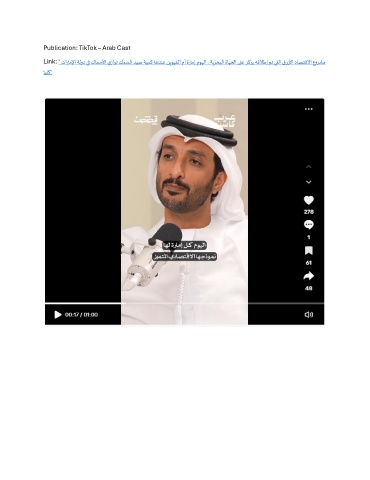 Publication: TikTok – Arab Cast Link: " تاراملإا ةلود يف كامسلأا يزاوت كمسلا ديص ةيمك اهدنع نيويقلا مأ ةرامإ مويلا ، ةيرحبلا ةايحلا ىلع زكري هقلاطإ مت يللا قرزلأا داصتقلاا عورشم اهلك"