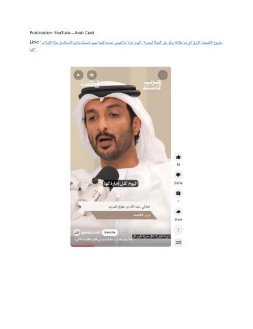 Publication: YouTube – Arab Cast Link: " تاراملإا ةلود يف كامسلأا يزاوت كمسلا ديص ةيمك اهدنع نيويقلا مأ ةرامإ مويلا ، ةيرحبلا ةايحلا ىلع زكري هقلاطإ مت يللا قرزلأا داصتقلاا عورشم اهلك"