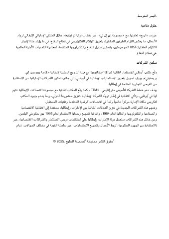 ةدﺎﻔﺘﺳﻻا ﻦﻣ ﺔﻴﺗارﺎﻣﻹا تﺎﻛﺮﺸﻟا ﻦﻴﻤﺗ ﺐﻧﺎﺟ ﻟإ ،ﺒﻇﻮﺑأ ﻓ ﺔﻴﻟﺎﻄﻳﻹا تارﺎﻤﺜﺘﺳﻻا ﺰﻳﺰﻌﺗو ﻞﻴﻬﺴﺗ فﺪﻬﺑ ،«ﺘﻴﺘﺴﻳﺮﺑ