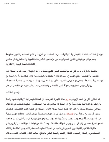 ﺔﻋوﻓدﻣ ،روطﺗﻟاو مادﺗﺳﻣﻟا وﻣﻧﻟا نﻣ دﯾزﻣﻟا وﺣﻧ دﻋﺎﺻﻟا ﺎھرﺎﺳﻣ ،ﺔﯾﻟﺎطﯾﻹا ﺔﯾﺗارﺎﻣﻹا ﺔﯾدﺎﺻﺗﻗﻻا تﺎﻗﻼﻌﻟا لﺻاوﺗ