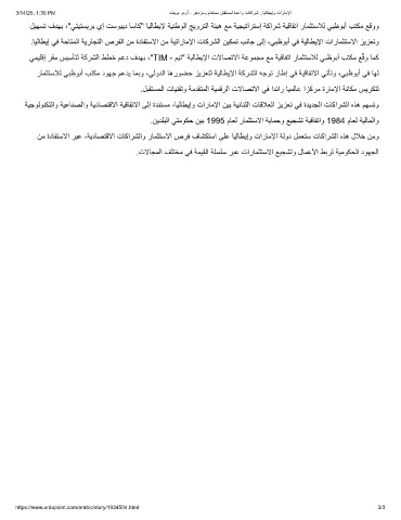 رﺎﻣﺛﺗﺳﻼﻟ ﻲﺑظوﺑأ بﺗﻛﻣ دوﮭﺟ مﻋدﯾ ﺎﻣﺑو ،ﻲﻟودﻟا ﺎھروﺿﺣ زﯾزﻌﺗﻟ ﺔﯾﻟﺎطﯾﻹا ﺔﻛرﺷﻟا ﮫﺟوﺗ رﺎطإ ﻲﻓ ﺔﯾﻗﺎﻔﺗﻻا ﻲﺗﺄﺗو ،ﻲﺑظوﺑأ ﻲﻓ ﺎﮭﻟ