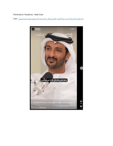 Publication: Facebook – Arab Cast Link: “ نيحضاو نيفده انوطع مهظفحي الله انخويش نكل ، يلماعلاو يتاراملإا داصتقلاا اهيلع دسحي لا ةرتف يف انك انوروك للاخ “