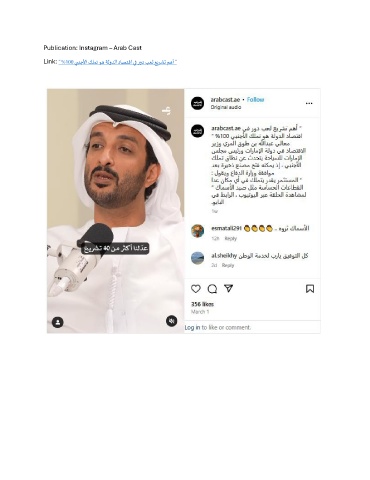 Publication: Instagram – Arab Cast Link: “ %100 يبنجلأا كلمت وه ةلودلا داصتقا يف رود بعل عيرشت مهأ “