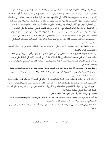ﺔﺌﺷﺎﻨﻟا ﻊﻳرﺎﺸﻤﻠﻟ ﺔﻴﻤﻟﺎﻋ ﺔﻨﺿﺎﺤﻛ ﺔﻟوﺪﻟا ﺔﻧﺎﻣ ﺦﺳﺮﻳ ﺎﻣ ،2031 لﻮﻠﺤﺑ %50 ﻟإ %30 ﻦﻣ بﺎﺒﺸﻟا لﺎﻤﻋﻷا داور