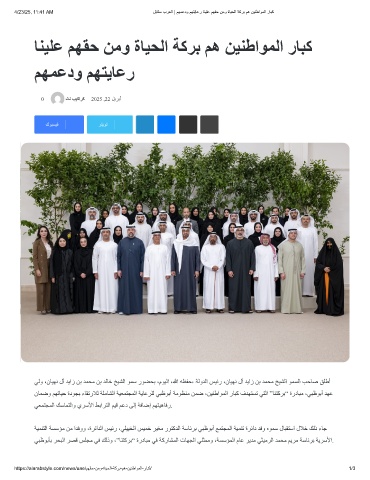 نﺎﻤﺿو ﻢﮭﺗﺎﯿﺣ ةدﻮﺠﺑ ءﺎﻘﺗرﻼﻟ ﺔﻠﻣﺎﺸﻟا ﺔﯿﻌﻤﺘﺠﻤﻟا ﺔﯾﺎﻋﺮﻠﻟ ﻲﺒظﻮﺑأ ﺔﻣﻮﻈﻨﻣ ﻦﻤﺿ ،ﻦﯿﻨطاﻮﻤﻟا رﺎﺒﻛ فﺪﮭﺘﺴﺗ ﻲﺘﻟا ”ﺎﻨﺘﻛﺮﺑ“ ةردﺎﺒﻣ ،ﻲﺒظﻮﺑأ ﺪﮭﻋ