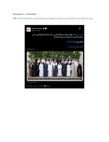 Publication: X – Al Etihad AE Link: # ةلماشلا ةيعمتجملا ةياعرلل يبظوبأ ةموظنم نمض نينطاوملا رابك ةايح ةدوج زيزعتل »انتكرب« ةردابم قلطي ةلودلا_سيئر