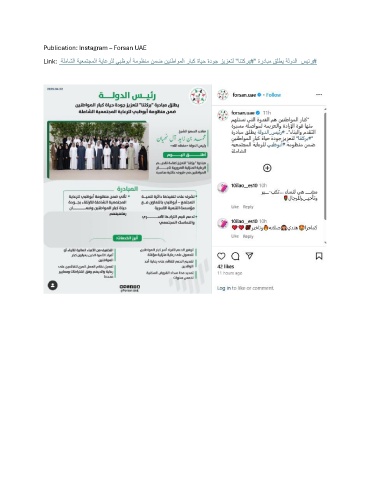 Publication: Instagram – Forsan UAE Link: ةلماشلا ةيعمتجملا ةياعرلل يبظوبأ ةموظنم نمض نينطاوملا رابك ةايح ةدوج زيزعتل "انتكرب#" ةردابم قلطي ةلودلا_سيئر#