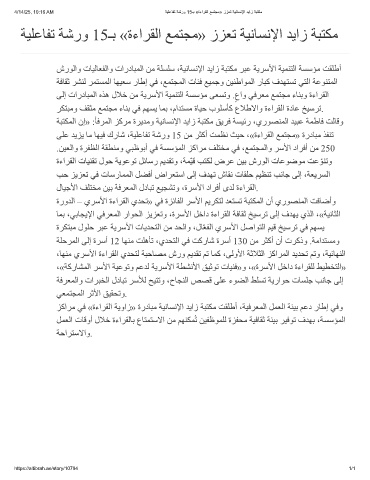 4/14/25, 10:16 AM                                 ﺔﯾﻠﻋﺎﻔﺗ ﺔﺷرو 15ـﺑ «ةءارﻘﻟا ﻊﻣﺗﺟﻣ» ززﻌﺗ ﺔﯾﻧﺎﺳﻧﻹا دﯾاز ﺔﺑﺗﻛﻣ