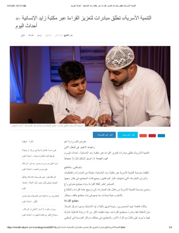 4/14/25, 10:17 AM «موﯾﻟا ثادﺣأ - ﺔﯾﻧﺎﺳﻧﻹا دﯾاز ﺔﺑﺗﻛﻣ رﺑﻋ ةءارﻘﻟا زﯾزﻌﺗﻟ تاردﺎﺑﻣ ﻖﻠطﺗ «ﺔﯾرﺳﻷا ﺔﯾﻣﻧﺗﻟا