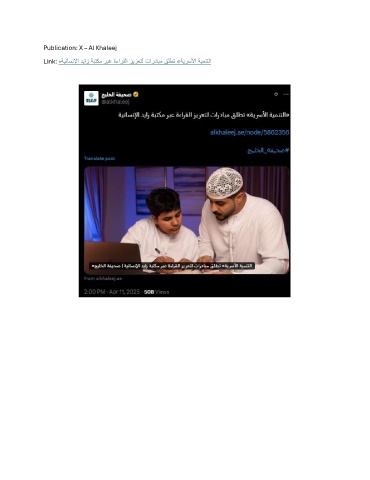 Publication: X – Al Khaleej Link: « ةيناسنلإا دياز ةبتكم ربع ةءارقلا زيزعتل تاردابم قلطت »ةيرسلأا ةيمنتلا