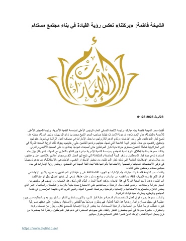 يعامتجلاا رودلاو ،مهمعدو نينطاوملا رابك ةياعر ىلع ةفاك ةمئاقلا دوهجلا »تاراملإا مأ« كرابم تنب ةمطاف ةخيشلا ومس تنَّمثو