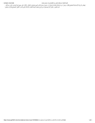 رﺎﺒﻛ ﻢﻋد ﻲﻓ ةﺮﻤﺘﺴﻤﻟا ﻢھدﻮﮭﺟ ﻰﻠﻋ ءﺎﻨﺜﻟاو ﺮﻜﺸﻟا نﻮﻘﺤﺘﺴﯾ ﻢﮭﻧأ ﻰﻟإ ﺎھﻮﻤﺳ ةﺮﯿﺸﻣ ،هراﺮﻘﺘﺳاو ﮫﺗﻮﻗو ﮫﻜﺳﺎﻤﺗ ﻦﻣ ز ّ ﺰﻌﯾو ،ﻞﻜﻛ ﻊﻤﺘﺠﻤﻠﻟ ﺔﯿﻧﺎﺴﻧﻹا ﺔﯾؤﺮﻟا ﺲﻜﻌﯾ