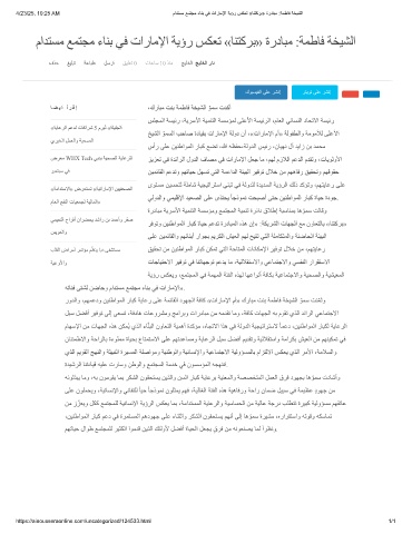 روﺪﻟاو ،ﻢﮭﻤﻋدو ﻦﯿﻨطاﻮﻤﻟا رﺎﺒﻛ ﺔﯾﺎﻋر ﻰﻠﻋ ﺔﻤﺋﺎﻘﻟا دﻮﮭﺠﻟا ﺔﻓﺎﻛ «تارﺎﻣﻹا مأ» كرﺎﺒﻣ ﺖﻨﺑ ﺔﻤطﺎﻓ ﺔﺨﯿﺸﻟا ّ ﻮﻤﺳ ﺖﻨّﻤﺛو