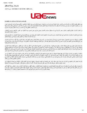 4/22/25, 11:08 AM UAE News - لﺑﻘﺗﺳﻣﻟا ﺔﺑاوﺑ ..ﺎﻧﺳرادﻣ - تارﺎﻣﻹا رﺎﺑﺧأ