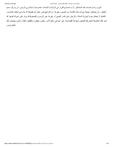 دﻗ .ﺎﮭﺳﻔﻧ ﺎﻛرﯾﻣأ ﻰﻠﻋ دﺗرﯾ دﻗ طوﻐﺿﻟاو موﺳرﻟا رﺑﻋ ﺎھرﯾﻏ وأ نﯾﺻﻟا رﺳﻛ ﻰﻠﻋ نﺎھرﻟاو ،ﺔﻠﻣﺎﺷ ﺔﯾرﺎﺟﺗ ً ﺎﺑرﺣ لﻣﺗﺣﯾ ﻻ مﻟﺎﻌﻟﺎﻓ