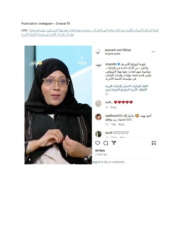 Publication: Instagram – Emarat TV Link: ةيمنت مسق سيئر ،يقوزرملا ةيهب اهنع ثدحتت مهم عوضوم ..تازاجلإا يف ةصاخ ءانبلأا نم برقتلاو ،ةيرسلأا طباورلا ةيوقت ةيرسلأا ةيمنتلا ةسسؤم يف بابشلا تاردقو تاراهم