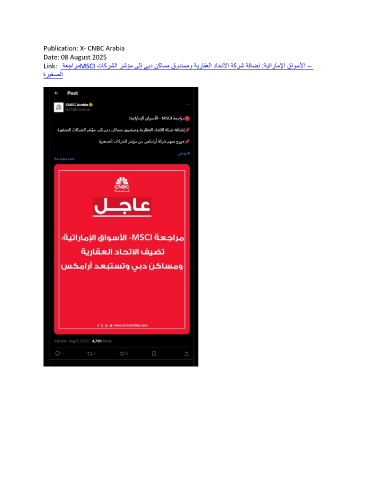 Publication: X- CNBC Arabia Date: 08 August 2025 Link: ةعجارمMSCI تاكرشلا رشؤم ىلإ يبد نكاسم قودنصو ةيراقعلا داحتلاا ةكرش ةفاضإ :ةيتاراملإا قاوسلأا – ةريغصلا