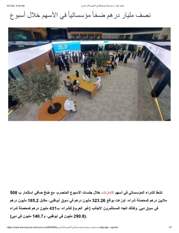 8/11/25, 8:38 AM عوﺑﺳأ لﻼﺧ مﮭﺳﻷا ﻲﻓ ً ﺎﯾﺗﺎﺳﺳؤﻣ ً ﺎﺧﺿ مھرد رﺎﯾﻠﻣ فﺻﻧ