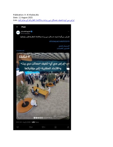 Publication: X- Al Khaleej Biz Date: 11 August 2025 Link: «اهتارشؤم ىلإ »ةيراقعلا داحتلاا«و »تير يبد نكاسم« فيضت »يآ يس سإ مإ