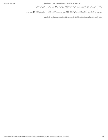 بﯾﺗرﺗﻟا ﻰﻠﻋ ﻊﯾﺑ ﺔﻠﺻﺣﻣ مھرد نوﯾﻠﻣ 4.94و ،مھرد نوﯾﻠﻣ 30.36 رﺎﻣﺛﺗﺳا ﻲﻓﺎﺻﺑ ﻊﯾﺑﻠﻟ برﻌﻟاو بﻧﺎﺟﻷا ﮫﺟﺗاو.