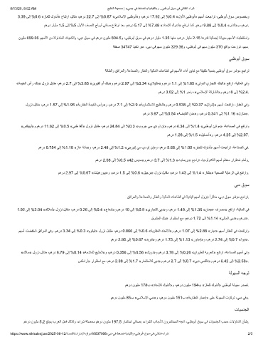 3.39 ﻰﻟإ %0.6 «زﺎﻐﻠﻟ كوﻧدأ» عﺎﻔﺗرا لﺑﺎﻘﻣ ،مھرد 22.7 ﻰﻟإ %0.87 «ﻲﻣﻼﺳﻹا ﻲﺑظوﺑأ»و ،مھرد 17.92 ﻰﻟإ %0.4 «لوﻷا ﻲﺑظوﺑأ» مﮭﺳأ تﻌﺟارﺗ ،ﻲﺑظوﺑأ قوﺳ صوﺻﺧﺑو