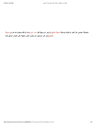 ﺔﻔﯾﺣﺻ نﻣ وھ ﺎﻣﻛ هاوﺗﺣﻣﺑ ﮫﻠﻘﻧ مﺗ ﺎﻣﻧاو موﯾﻟا رﺻﻣ رظﻧ ﺔﮭﺟو نﻋ رﺑﻌﯾ ﻻو ﺞﯾﻠﺧﻟا ﺔﻔﯾﺣﺻ ﺔطﺳاوﺑ ﮫﺗﺑﺎﺗﻛ مﺗ رﺑﺧﻟا اذھ نوﻣﺿﻣ :ﺔظوﺣﻠﻣ