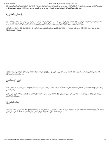 ﺎﮭﺴﻔﻧ ةﺮﺘﻔﻟا لﻼﺧ ﻢھرد تارﺎﯿﻠﻣ 3.38 ﻊﻣ ﺔﻧرﺎﻘﻣ ،ﻢھرد تارﺎﯿﻠﻣ 3.73 ﻰﻟإ 2025 مﺎﻋ ﻦﻣ لوﻷا ﻒﺼﻨﻟا ﻲﻓ % 10 ﺔﺒﺴﻨﺑ ﻲﻣﻼﺳﻹا ﻲﺑد ﻚﻨﺒﻟ ﺔﯿﻓﺎﺼﻟا حﺎﺑرﻷا ﺖﻌﻔﺗرا