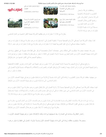 ،ﻢھرد نﻮﯿﻠﻣ 14.56 ﻰﻟإ %58.11 ﺔﺒﺴﻨﺑ ﺔﻛﺮﺸﻟا حﺎﺑرأ ﻲﻓﺎﺻ ﻊﺟاﺮﺗ ﺎﻤﻨﯿﺑ ،2024 ﻦﻣ ﺔﻠﺛﺎﻤﻤﻟا ةﺮﺘﻔﻟا ﻲﻓ ﻢھرد نﻮﯿﻠﻣ 265.8