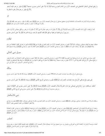 ،% 22.48 وﻣﻧﺑ ،مھرد رﺎﯾﻠﻣ 1.45 وﺣﻧﺑ 2025 مﺎﻋ نﻣ لوﻷا فﺻﻧﻟا لﻼﺧ حﺎﺑرأ ﻲﻓﺎﺻ ﻖﯾﻘﺣﺗ ،(ود) ﺔﻠﻣﺎﻛﺗﻣﻟا تﻻﺎﺻﺗﻼﻟ تارﺎﻣﻹا ﺔﻛرﺷ تﻧﻠﻋأو