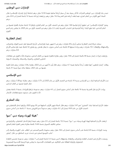 ﻢﻫرد تارﺎﻴﻠﻣ 3.38 ﻊﻣ ﺔﻧرﺎﻘﻣ ،ﻢﻫرد تارﺎﻴﻠﻣ 3.73 ﻰﻟإ 2025 مﺎﻋ ﻦﻣ لوألا ﻒﺼﻨﻟا ﻲﻓ ﺔﺌﻤﻟﺎﺑ 10 ﺔﺒﺴﻨﺑ ﻲﻣالﺳإلا ﻲﺑد ﻚﻨﺒﻟ ﺔﻴﻓﺎﺼﻟا حﺎﺑرألا ﺖﻤﻧ