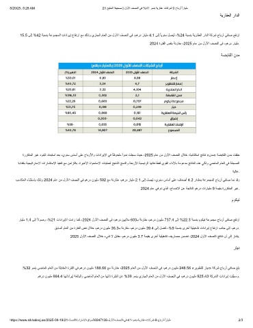 2024 ةرﺗﻔﻟا سﻔﻧﺑ ﺔﻧرﺎﻘﻣ ،2025 مﺎﻋ نﻣ لوﻷا فﺻﻧﻟا ﻲﻓ ،مھرد رﺎﯾﻠﻣ.