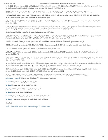 نﻣ ﺔﺻﺣ ﺔﻛرﺷﻟا تﻠﺟﺳو .مھرد نوﯾﻠﻣ 288 لﺑﺎﻘﻣ ،مھرد نوﯾﻠﻣ 544 ﻰﻟإ %89 لﯾوﻣﺗﻟا تادارﯾإ ﻲﻓﺎﺻو ،مھرد رﺎﯾﻠﻣ 9.9 ﻰﻟإ %35 تادارﯾﻹا تﻌﻔﺗرا ﺎﻣﻛ