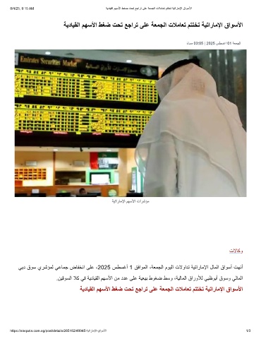 ﻲﺑد قوﺳ يرﺷؤﻣﻟ ﻲﻋﺎﻣﺟ ضﺎﻔﺧﻧا ﻰﻠﻋ ،2025 سطﺳﻏأ 1 ﻖﻓاوﻣﻟا ،ﺔﻌﻣﺟﻟا موﯾﻟا تﻻوادﺗ ﺔﯾﺗارﺎﻣﻹا لﺎﻣﻟا قاوﺳأ تﮭﻧأ
