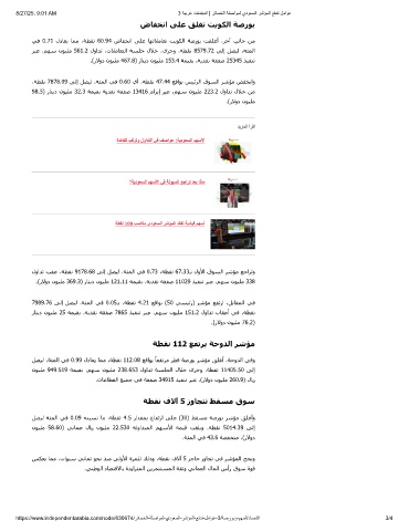 ﻲﻓ 0.71 لدﺎﻌﻳ ﺎﻤﻣ ،ﺔﻄﻘﻧ 60.94 ضﺎﻔﺨﻧا ﻰﻠﻋ ﺎﮫﺗﻼﻣﺎﻌﺗ ﺖﻳﻮﻜﻟا ﺔﺻرﻮﺑ ﺖﻘﻠﻏأ ،ﺮﺧآ ﺐﻧﺎﺟ ﻦﻣ