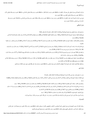 «لﯾﺗﺳﻣأ» لوزﻧ لﺑﺎﻘﻣ ،مھرد 11.58 ﻰﻟإ %0.17 ﻲﺑظ ﺎﻔﻟأو مھرد 4.17 ﻰﻟإ %0.5 «ﻲﺑظوﺑأ ﺊﻧاوﻣ»و مھرد 5.32 ﻰﻟإ %0.4 «دادﻣﻺﻟ كوﻧدأ» مﮭﺳأ تﻌﻔﺗرا ،ﺔﻋﺎﻧﺻﻟا عﺎطﻗ ﻲﻓو