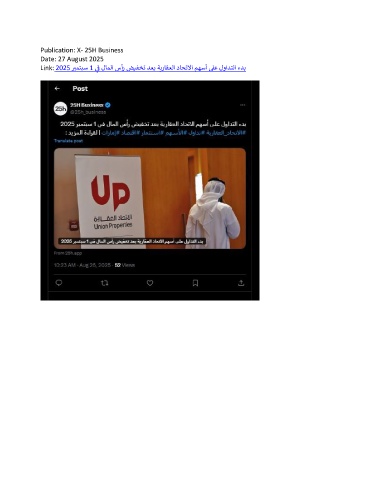 Publication: X- 25H Business Date: 27 August 2025 Link: 2025 ر بمتبس 1 ف لاملا سأر ضيفخت دعب ةيراقعلا داحتلاا مهسأ لىع لوادتلا ءدب ي