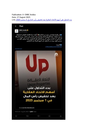 Publication: X- CNBC Arabia Date: 27 August 2025 Link: 2025 ر بمتبس 1 ف لاملا سأر ضيفخت دعب ةيراقعلا داحتلاا مهسأ لىع لوادتلا ءدب ي