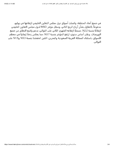 ﻲﺠﻴﻠﺨﻟا نوﺎﻌﺘﻟا ﺲﻠﺠﻣ لوﺪﻟ MSCI رشﺆﻣ ﻞﺠﺳو .ﻲﻧﺎﺜﻟا ﻊﺑﺮﻟا حﺎﺑرأ نﺄﺸﺑ لؤﺎﻔﺘﻟﺎﺑ  ً ﺔﻋﻮﻓﺪﻣ