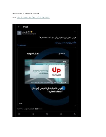 Publication: X- Akhbar Al Emarat Link: لام سأر ضيفخت رارق ليعفت ..مويلا"ةيراقعلا داحتلاا"