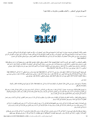 9/1/25, 10:28 AM ً ﺎﻧوﯾﻠﻣ 960 ب تﺎﯾرﺗﺷﻣ نوﺻﻧﺗﻘﯾ بﻧﺎﺟﻷاو ..سطﺳﻏأ ﻲﻓ ﻊﺟارﺗﺗ مﮭﺳﻷا | ﺔﯾﺗارﺎﻣﻹا ﺞﯾﻠﺧﻟا ﺔﻔﯾﺣﺻ