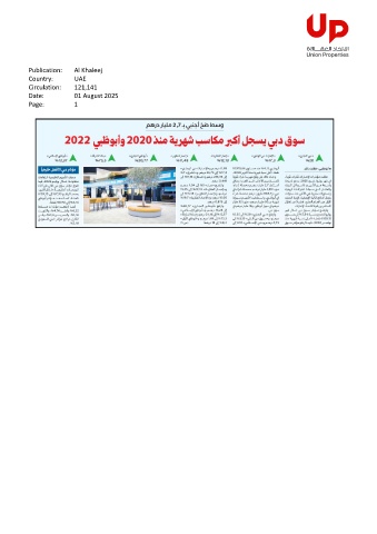 Publication: Al Khaleej Country: UAE Circulation: 121,141 Date: 01 August 2025 Page: 1
