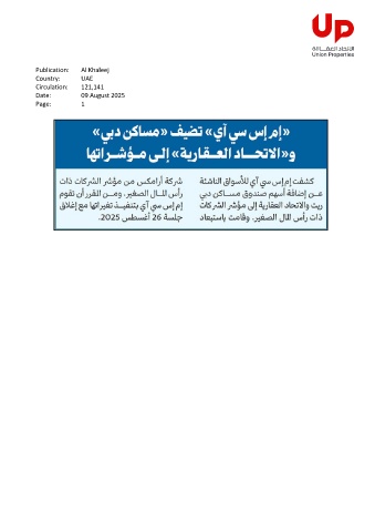 Publication: Al Khaleej Country: UAE Circulation: 121,141 Date: 09 August 2025 Page: 1