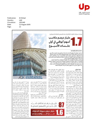 Publication: Al Etihad Country: UAE Circulation: 109,640 Date: 12 August 2025 Page: 13