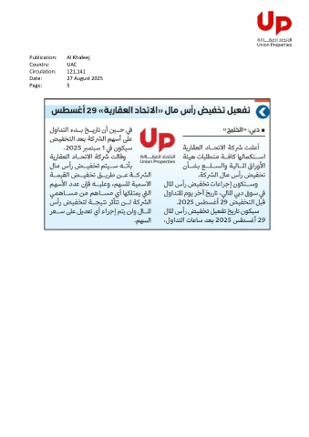 Publication: Al Khaleej Country: UAE Circulation: 121,141 Date: 27 August 2025 Page: 5