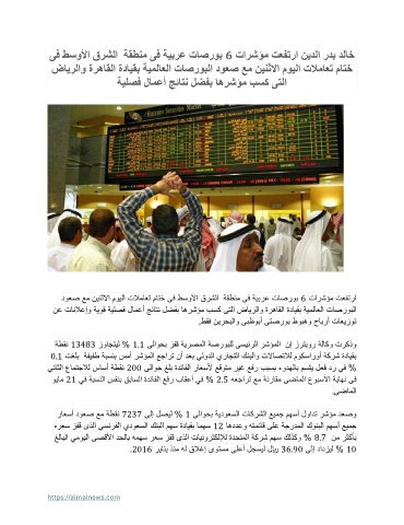 ىف طسولأا قرشلا ةقطنم ىف ةيبرع تاصروب 6 تارشؤم تعفترا نيدلا ردب دلاخ