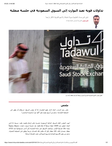 8/5/25, 9:49 AM ﺔﯾﺑرﻋ تﻧدﻧﺑدﻧا | ﺔﺑﻠﻘﺗﻣ ﺔﺳﻠﺟ ﻲﻓ ﺔﯾدوﻌﺳﻟا قوﺳﻟا ﻰﻟإ نزاوﺗﻟا دﯾﻌﺗ ﺔﯾوﻗ تﻻوادﺗ