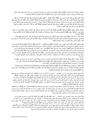 نم ةعومجم ايبرصو تاراملإا نيب ةلماشلا ةيداصتقلاا ةكارشلا ةيقافتا رفوت “ ..رامثتسلاا ريزو ،يديوسلا نسح دمحم يلاعم لاقو