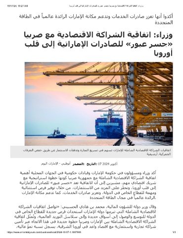 10/17/24, 10:27 AM ﺎﺑوروأ بﻠﻗ ﻰﻟإ ﺔﯾﺗارﺎﻣﻹا تاردﺎﺻﻠﻟ «روﺑﻋ رﺳﺟ» ﺎﯾﺑرﺻ ﻊﻣ ﺔﯾدﺎﺻﺗﻗﻻا ﺔﻛارﺷﻟا ﺔﯾﻗﺎﻔﺗا :ءارزو