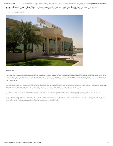 5/7/25, 8:14 AM ﺔﯾﻧورﺗﻛﻟﻹا ﺎﯾدﯾﺑﺎﺑﯾﻟ ﺔﻠﺟﻣ - "ﻊﻣﺗﺟﻣﻟا ﺔﻣادﺗﺳا ﻖﯾﻘﺣﺗ ﻲﻓ ﺎھرﺛأو تﺎﻛارﺷﻟا ةرادإ" لوﺣ ﺔﯾﻣوﻛﺣﻟا تﺎﮭﺟﻠﻟ لﻣﻋ ﺔﺷرو مظﻧﯾ ﻲﺋﺎﺿﻘﻟا ﻲﺑد دﮭﻌﻣ Lebapedia News Magazine